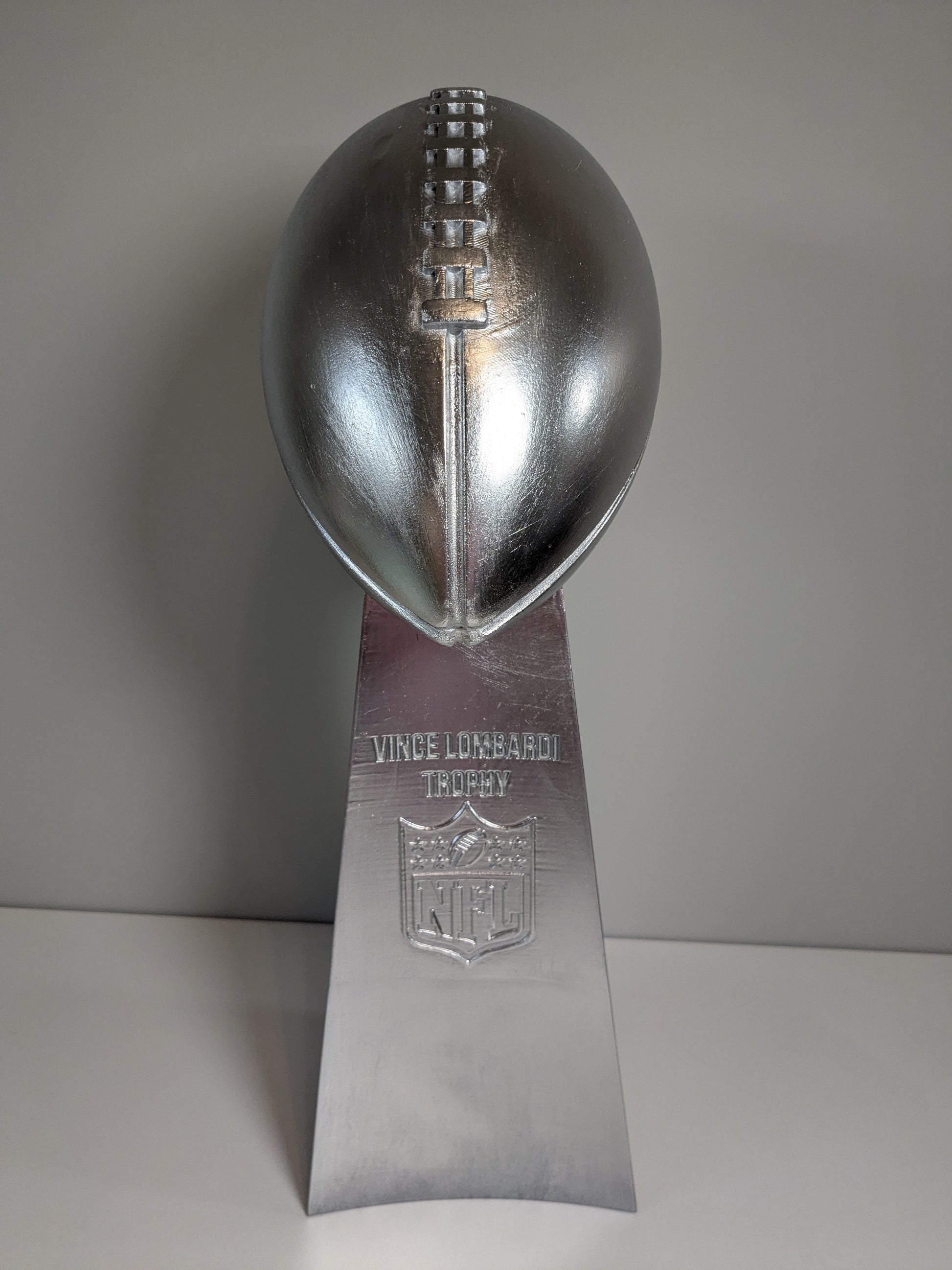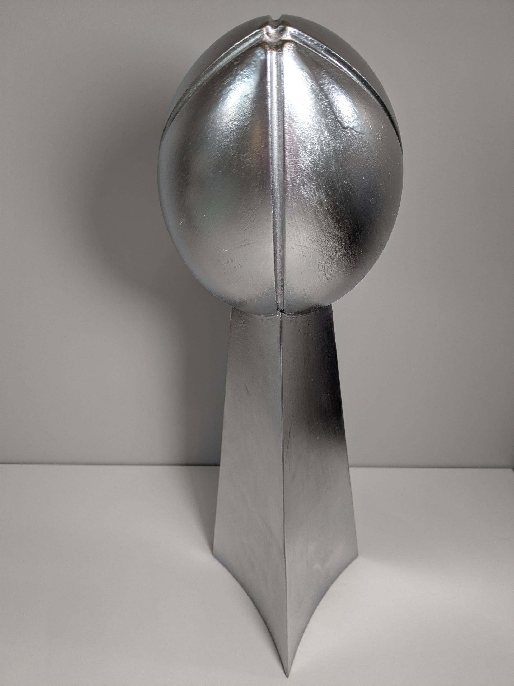 Celebrate the spirit of the Super Bowl with your very own 3D printed replica of the Vince Lombardi Trophy – the ultimate symbol of football greatness. This striking piece is perfect for sports lovers, man caves, fantasy football awards, or as a bold centerpiece at your next game day party.